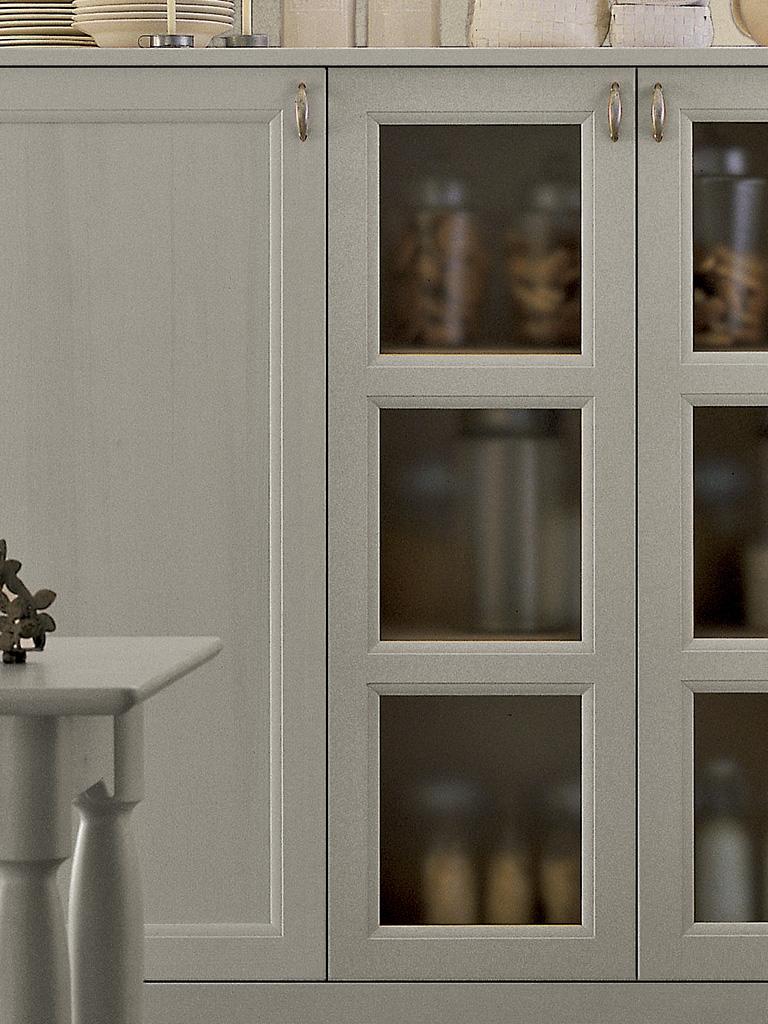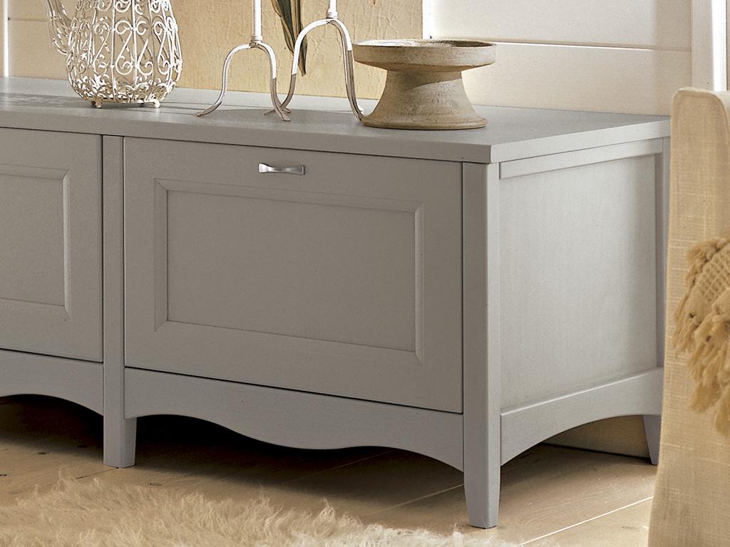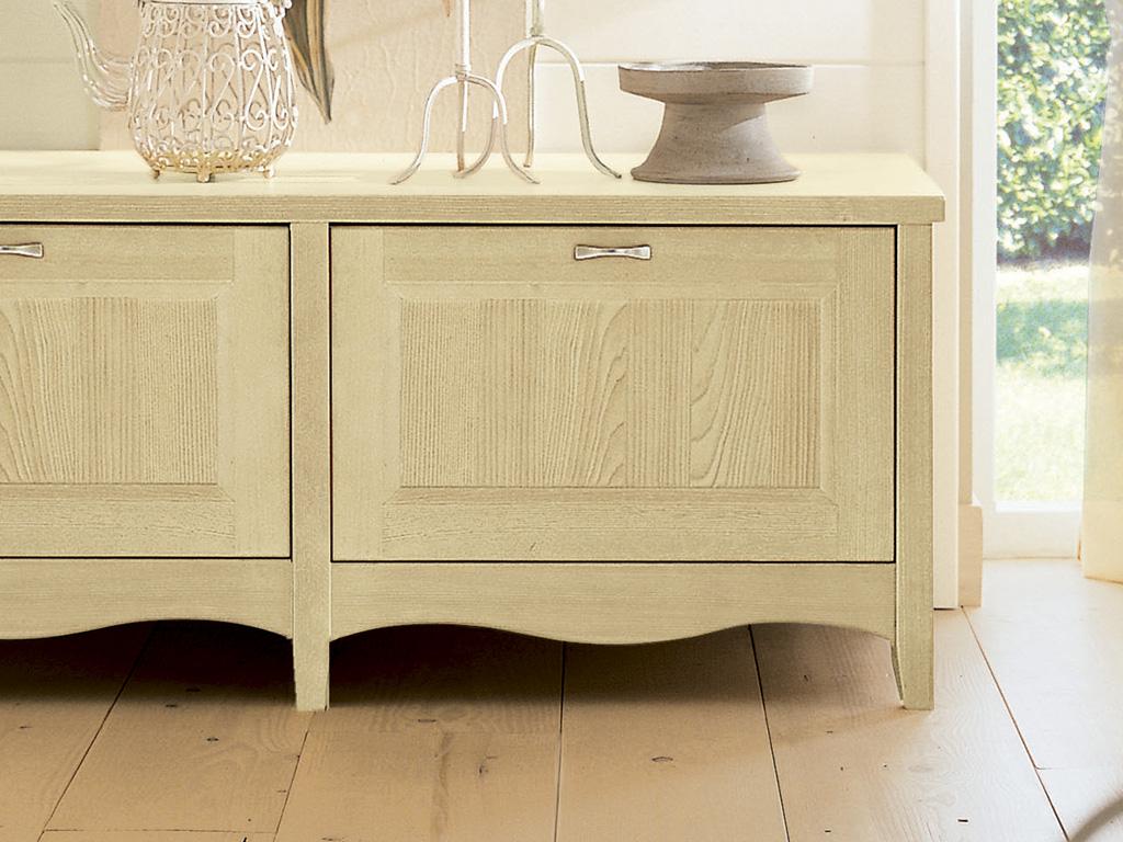 Struttura in abete massello e multistrato impiallaciato abete, schienale in particelle di legno, e cestoni con frontali telaio in abete massello con pannello in multistrato di pioppo impiallaciato abete (o vetro acidato) e struttura in multistrato di betulla spessore 15 mm con fondo in compensato spessore 6 mm. Guide quadro estrazione totale con sistema di chiusura rallentata Blumotion.
