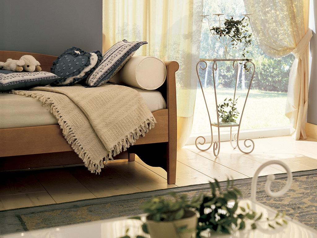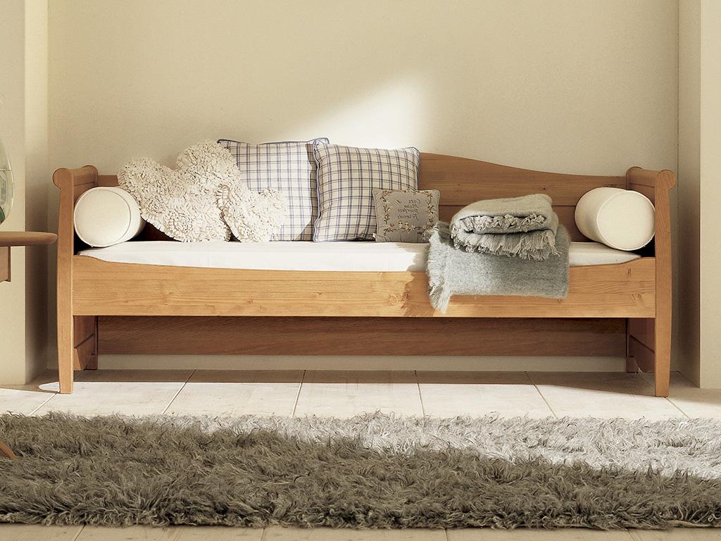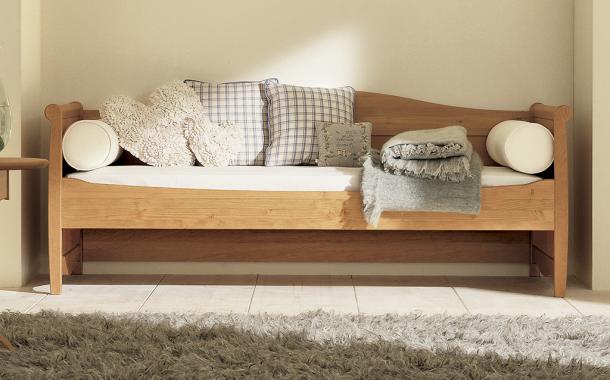 Divano in legno impiallacciato, disponibile anche attrezzato con cassetti inferiori estraibile o con secondo letto.