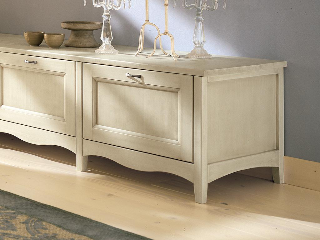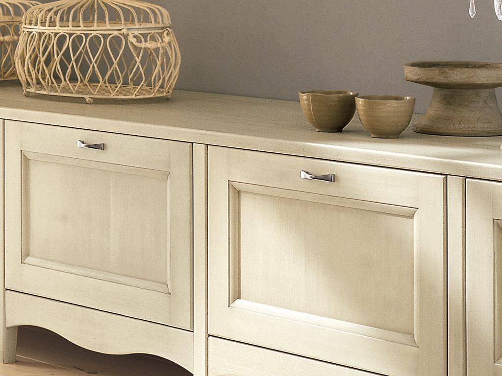 Struttura in abete massello e multistrato impiallaciato abete, schienale in particelle di legno, e cestoni con frontali telaio in abete massello con pannello in multistrato di pioppo impiallaciato abete (o vetro acidato) e struttura in multistrato di betulla spessore 15 mm con fondo in compensato spessore 6 mm. Guide quadro estrazione totale con sistema di chiusura rallentata Blumotion.