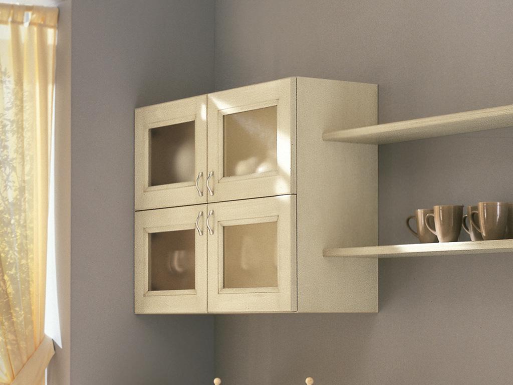 Struttura con pannello in multistrato spessore 18 mm con schienale in particelle di legno spessore 8 mm con profondità 342 mm. Ante con telaio in abete massello e pannello in multistrato impiallacciato abete spessore 22 mm o vetro con telaio in massello e vetro acidato.