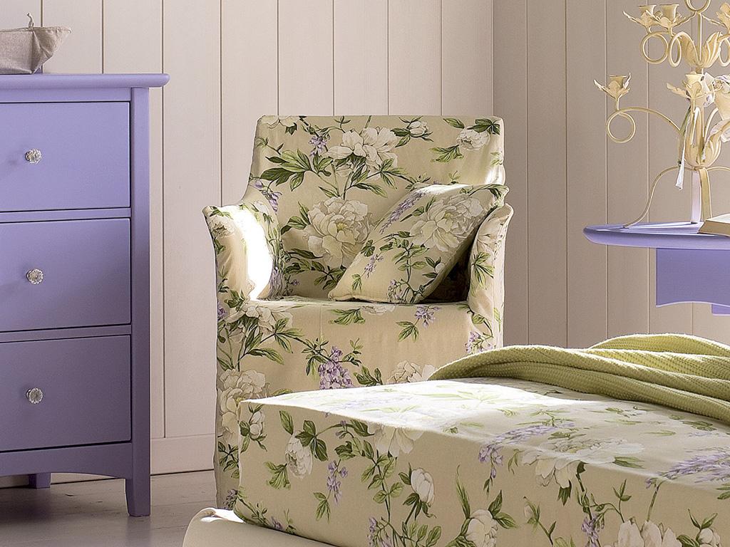 Letto imbottito disponibile nei tessuti Valplana. Disponibile anche con contenitore alzabile da pediera e meccanismo Pratik con alzaletto.