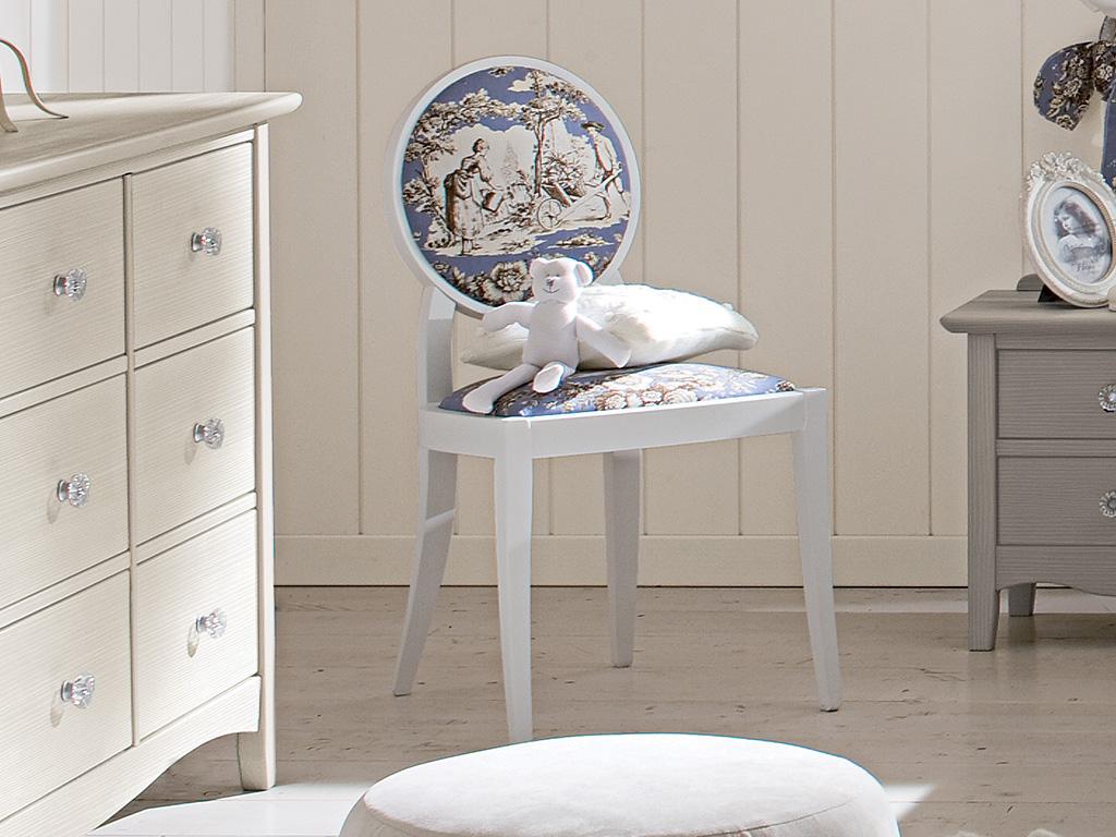 Sedia imbottita con schienale e sedile in tessuto non sfoderabile.