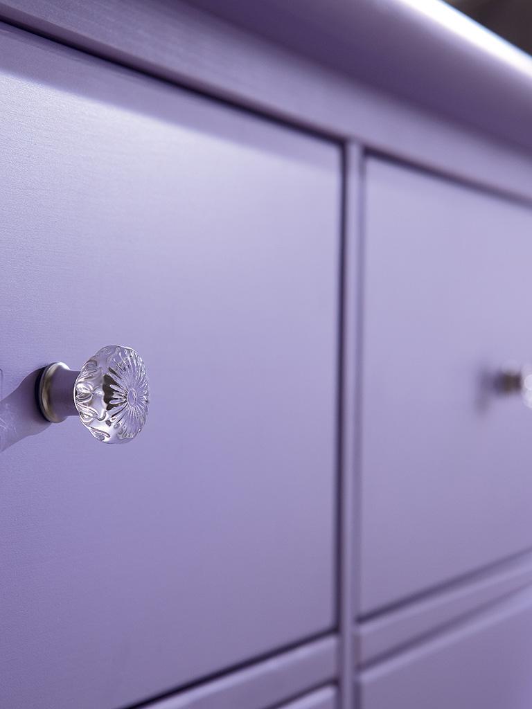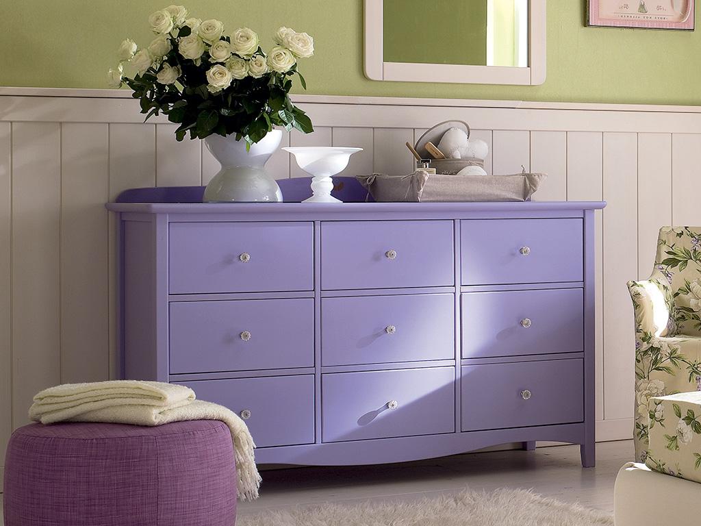 alla poltroncina Space 2. Cassettone a 9 cassetti laccato glicine su