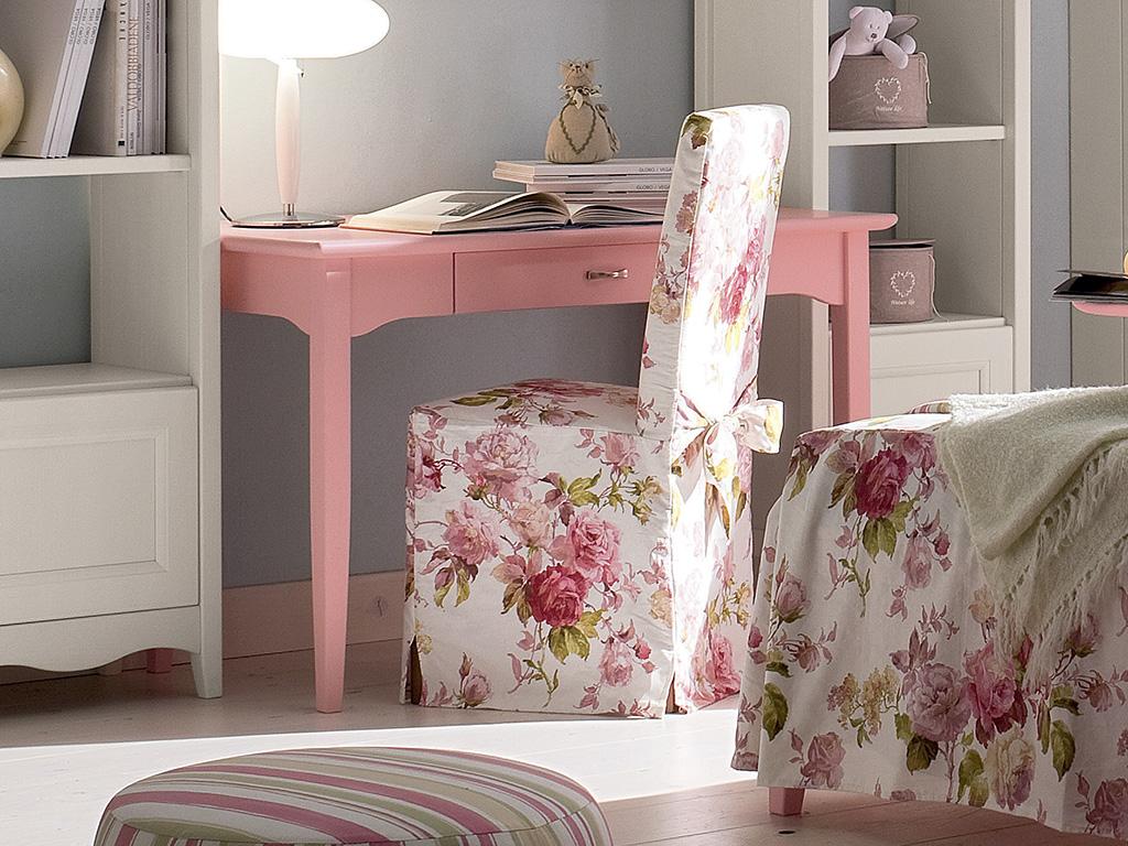 A rendere l'ambente più armonioso ed ordinato, la parete a spalla Racconti in bianco liscio e lo scrittoiorosa su base levigata.