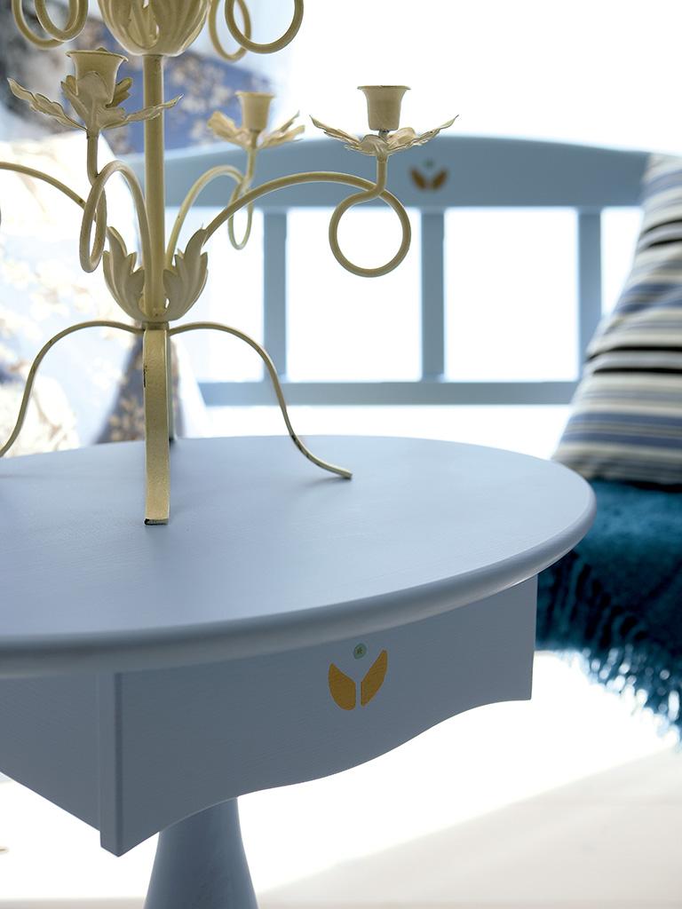 Finitura azzurro su legno levigato liscio pratico da pulire.