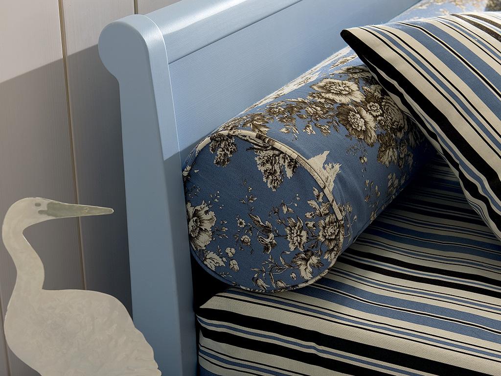 Incorniciato dalla Boiserie a Doghe Verticali laccata bianca su base liscia, finita con profilo superiore, ecco il letto Jimmy singolo con comodino ad un cassetto.