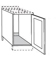 Base con struttura in multistrato spessore 18 mm con profondità 582 mm, con anta in legno con telaio in abete massello e pannello in multistrato di pioppo impiallacciato abete spessore 22 mm e un ripiano in multistrato spessore 18 mm. Possibilità di attezzare la base con cassetti interni ad estrazione totale nelle larghezze 450, 600 e 900 mm.