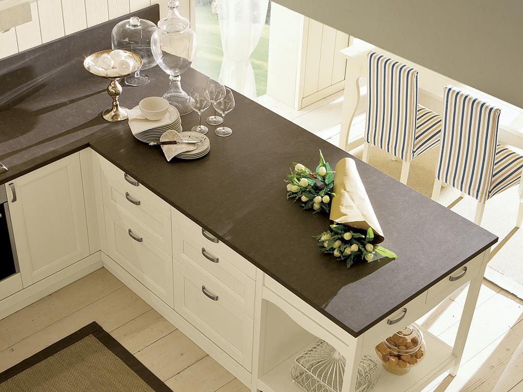 Stone, materiale in quarzo ricomposto dalle tonalità naturali con caratteristiche irregolarità della superficie che non si macchia e non si graffia.