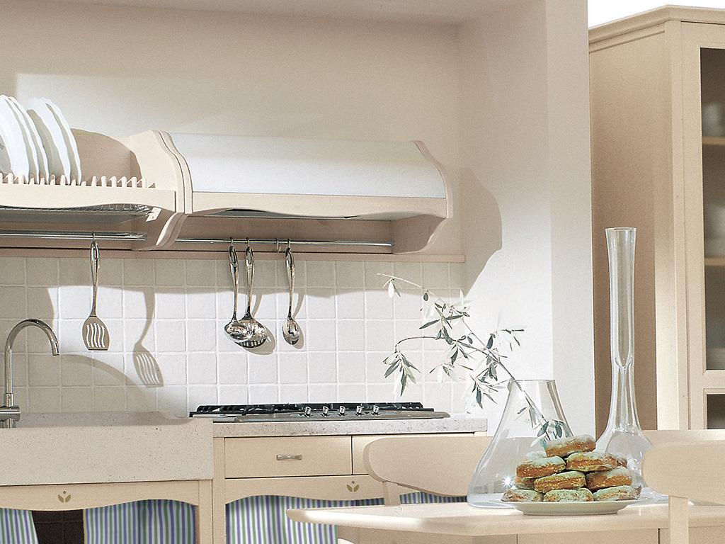 Il pensile scolapiatti Racconti a vista è dotato dell'indispensabile griglia per piatti e bicchieri.