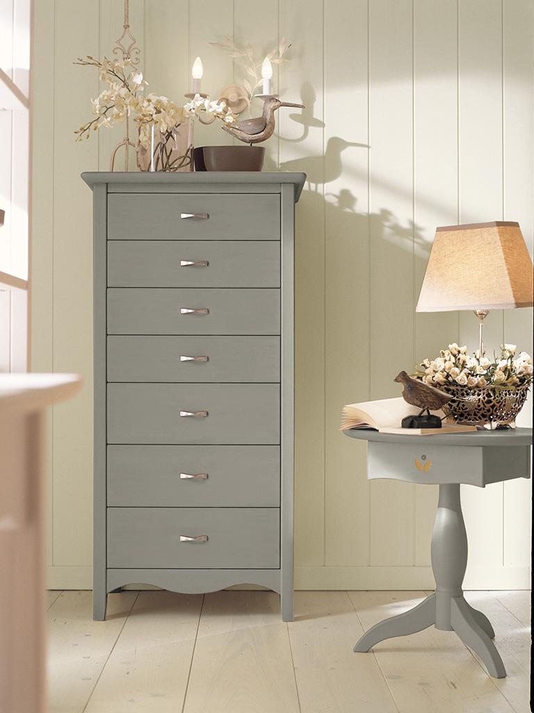 Struttura in multistrato impiallacciato abete con schienali in particelle di legno spessore 8 mm. Cassetti con telaio in abete massello con pannello in multistrato di pioppo impiallacciato abete. Struttura del cassetto in multistrato di betulla spessore 15 mm e fondo in compensato. Guide quadro ad estrazione totale. Profondità 500 mm. Rifinibile con cimasa superiore.