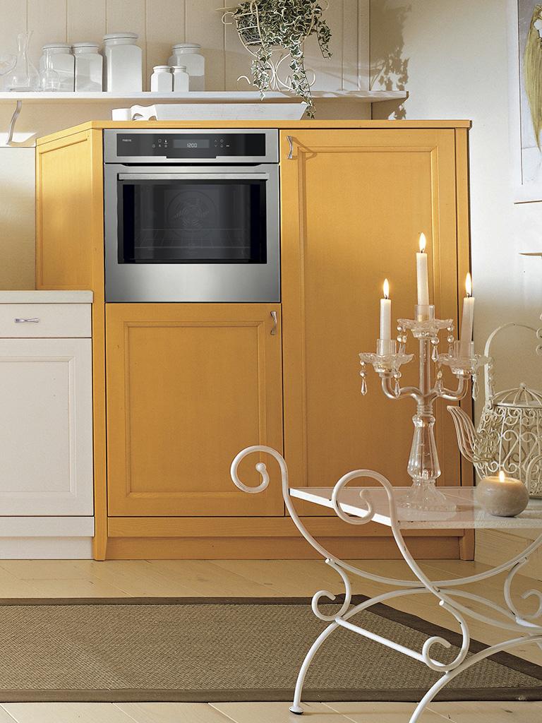Colonna con struttura in multistrato spessore 18 mm con profondità 582 mm, con anta in legno con telaio in abete massello e pannello in multistrato di pioppo impiallacciato abete spessore 22 mm, completo di griglia di aereazione. L'elemento può essere destro o sinistro.