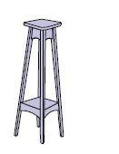 Struttura in agglomerato di abete con fondo e coperchio spessore 28 mm, racchiusa in masselli spessore 25 mm. Gambe in massello spessore 40 mm.