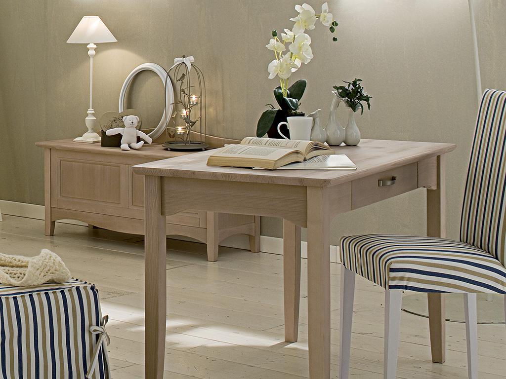 Tavolo uso scrittoio con cassettino frontale. Rifinibile con cimasa superiore.