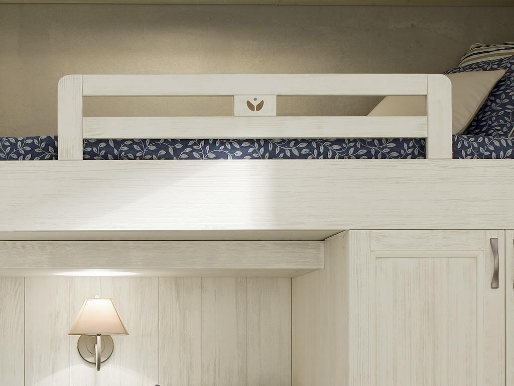 Letto soppalco con armaio inferiore e sopralzo ponte. Disponibile in diverse combinazioni. Profondità 915 mm.