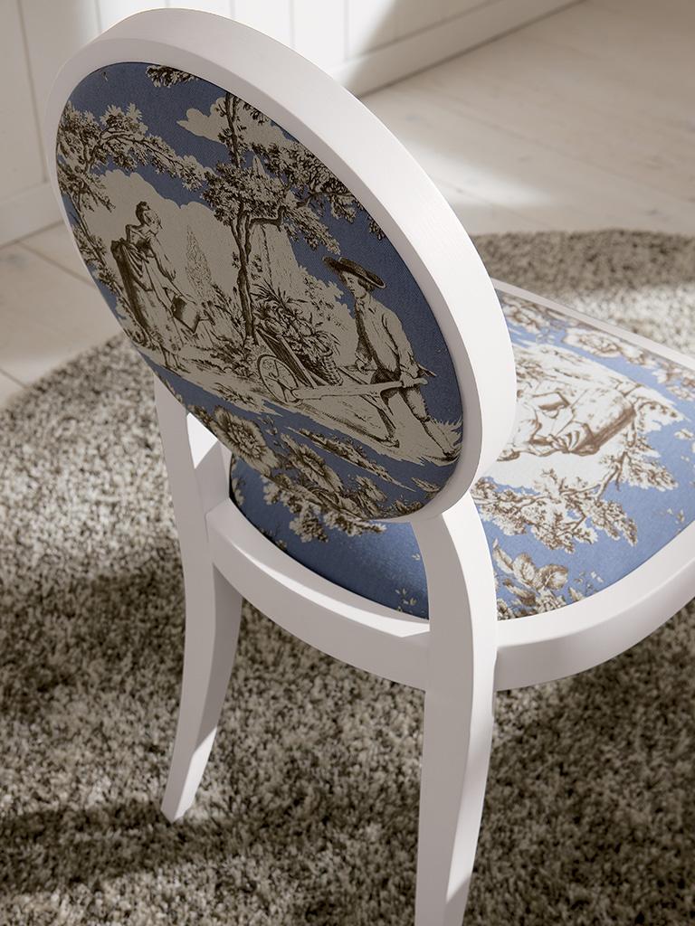 Sedia imbottita con schienale e sedile in tessuto non sfoderabile.