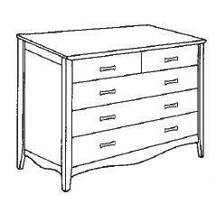 Struttura in multistrato impiallacciato abete con schienali in particelle di legno spessore 8 mm. Cassetti con telaio in abete massello con pannello in multistrato di pioppo impiallacciato abete. Struttura del cassetto in multistrato di betulla spessore 15 mm e fondo in compensato. Guide quadro ad estrazione totale. Profondità 520 mm. Rifinibile con cimasa superiore.