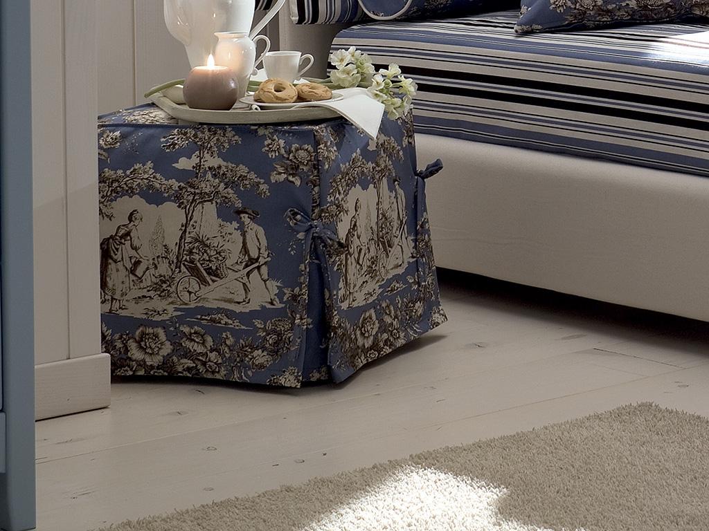 Il pouf quadro,elegante complemento d'arredo, viene qui utilizzato in sostituzione del classico comodino.