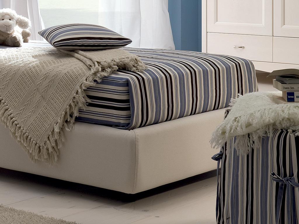 Letto imbottito disponibile nei tessuti Valplana. Disponibile anche con contenitore alzabile da pediera e meccanismo Pratik con alzaletto.